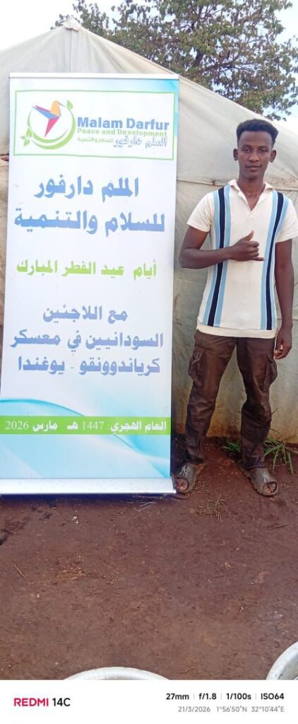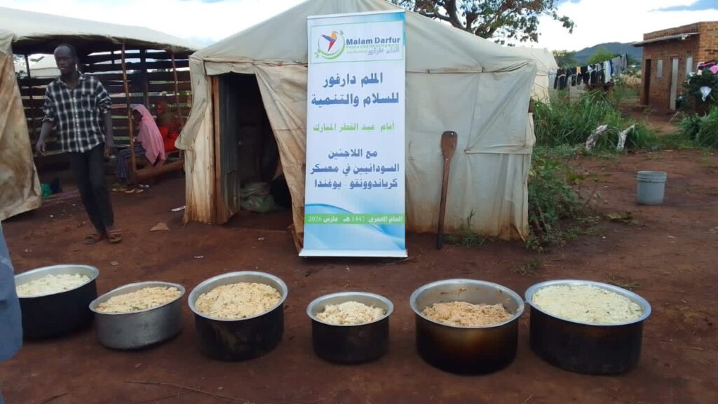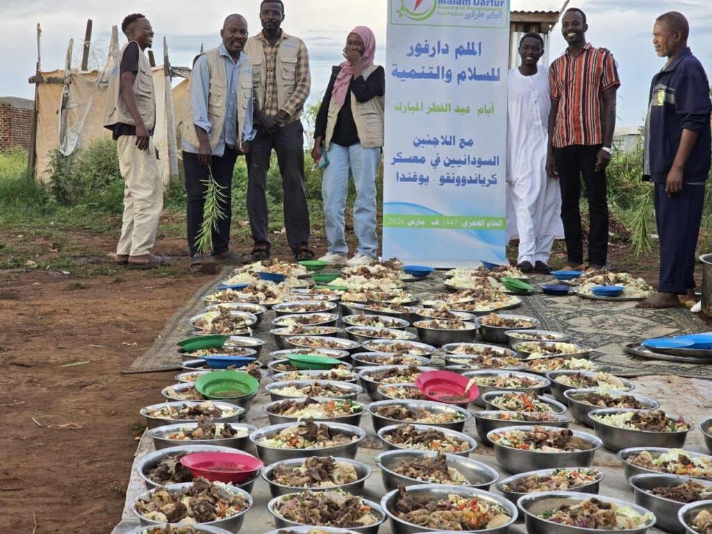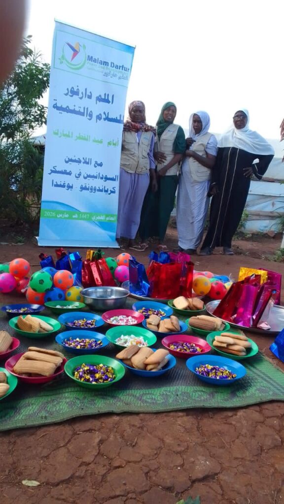 On the second day of Eid al-Fitr, March 21, 2026, Malam Darfur Peace and Development organized an Eid celebration for Sudanese refugees in Kiryandongo Camp, Uganda. The event welcomed more than 900 refugees,men, women, and children, in a warm and joyful atmosphere of togetherness. A full meal was served, along with Cookies and sweets, and gifts were distributed to children to bring happiness to their hearts and allow them to share in the spirit of Eid.