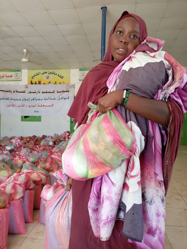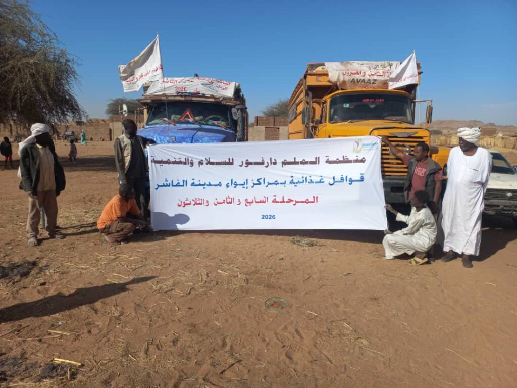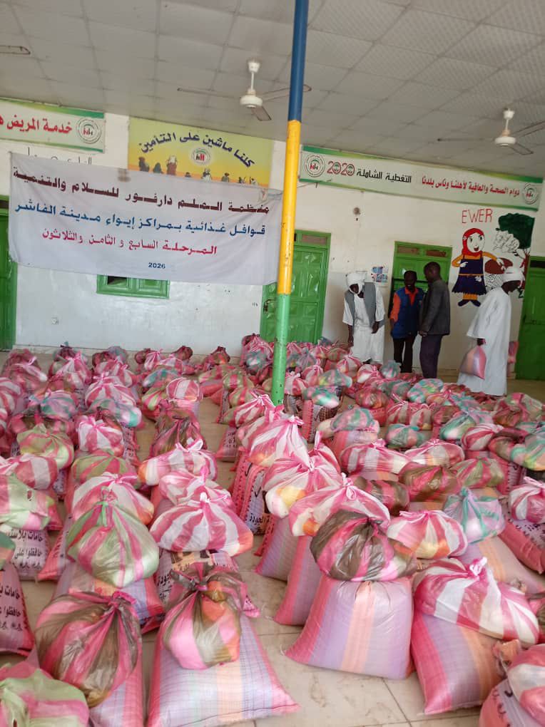 On February 24, 2026, the weekly convoy of Malam Darfur Peace and Development arrived in Al Fasher, where it distributed 1,200 food baskets to families in need across the neighborhoods of Abu Shouk, Al-Takaful, Al-Na’eem, Dar Al-Arqam, and Al-Rahma.